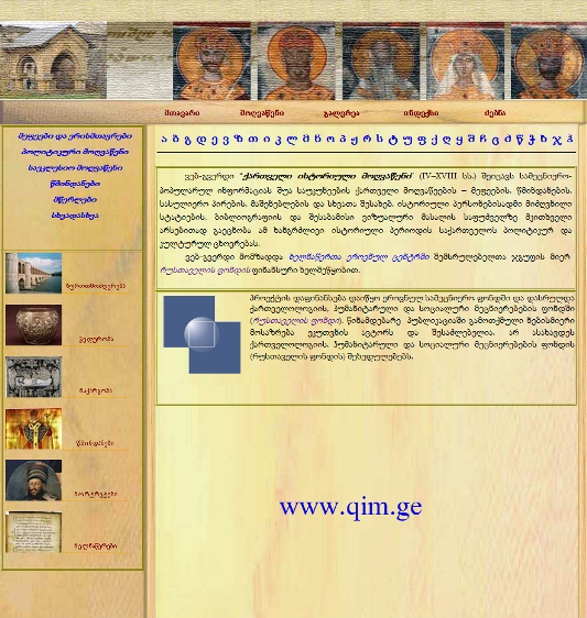 ![]() შუა საუკუნეების ქართველი მოღვაწეების შესახებ სპეციალური ვებ-გვერდი შეიქმნა შუა საუკუნეების ქართველი მოღვაწეების შესახებ დეტალური ინფორმაციის მოძიება ინტერნეტით გახდა შესაძლებელი. შესაბამისი ვებ-გვერდი www.qim.ge საქართველოს განათლებისა და მეცნიერების სამინისტროს შოთა რუსთაველის ეროვნული სამეცნიერო ფონდის საგრანტო კონკურსის ფარგლებში შეიქმნა. 26.06.2012