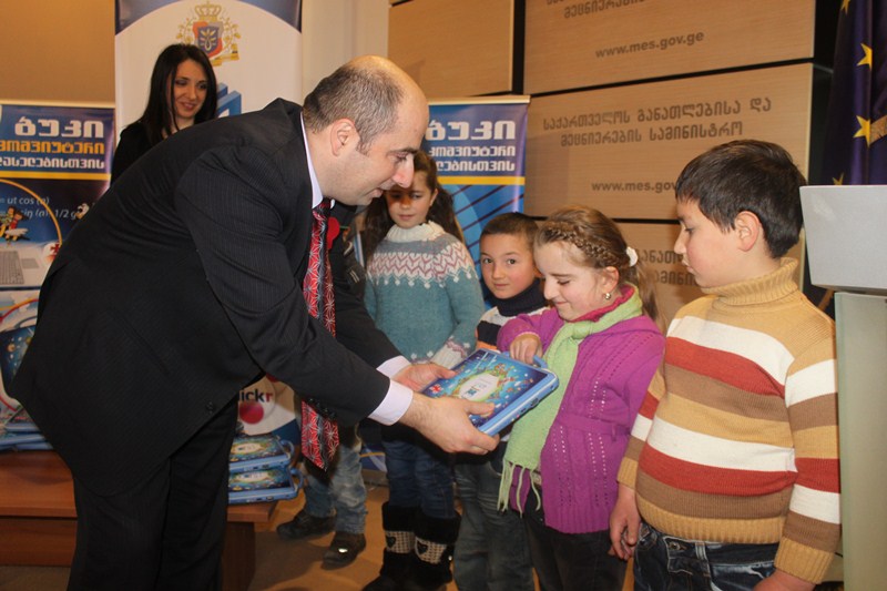 ![]() აგვისტოს ომში დაღუპული გმირების შვილები ნეთბუკებით დასაჩუქრდნენ ”ოკუპაციის კვირეულის” ფარგლებში, საქართველოს განათლებისა და მეცნიერების სამინისტრომ 2008 წლის აგვისტოს ომში დაღუპული გმირების შვილებს უმასპინძლა. მინისტრის მოადგილემ ნოდარ სურგულაძემ მე-2, მე-3 კლასელ წარჩინებულ 20 მოსწავლეს საჩუქრად ნეთბუკები გადასცა. 24.02.2012